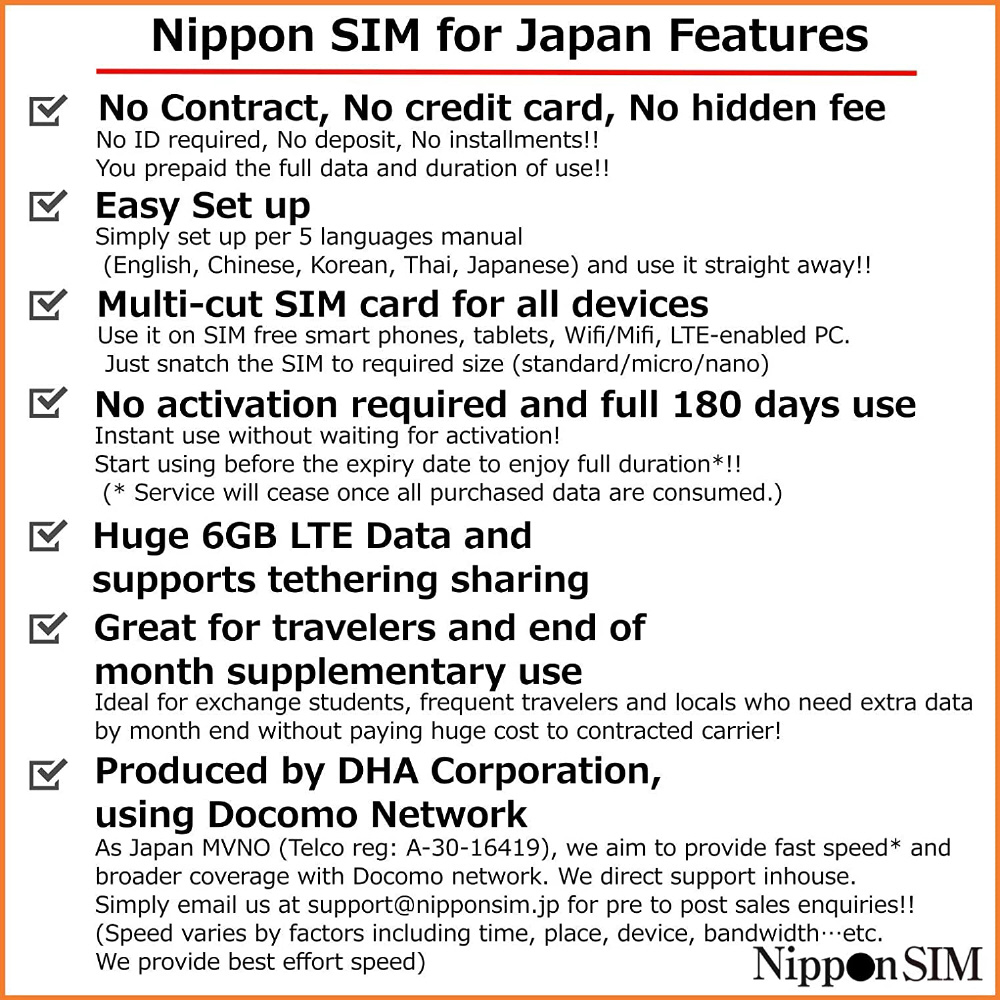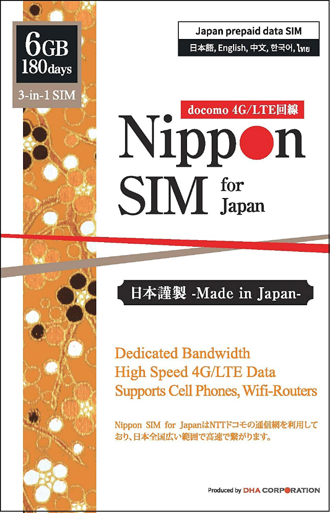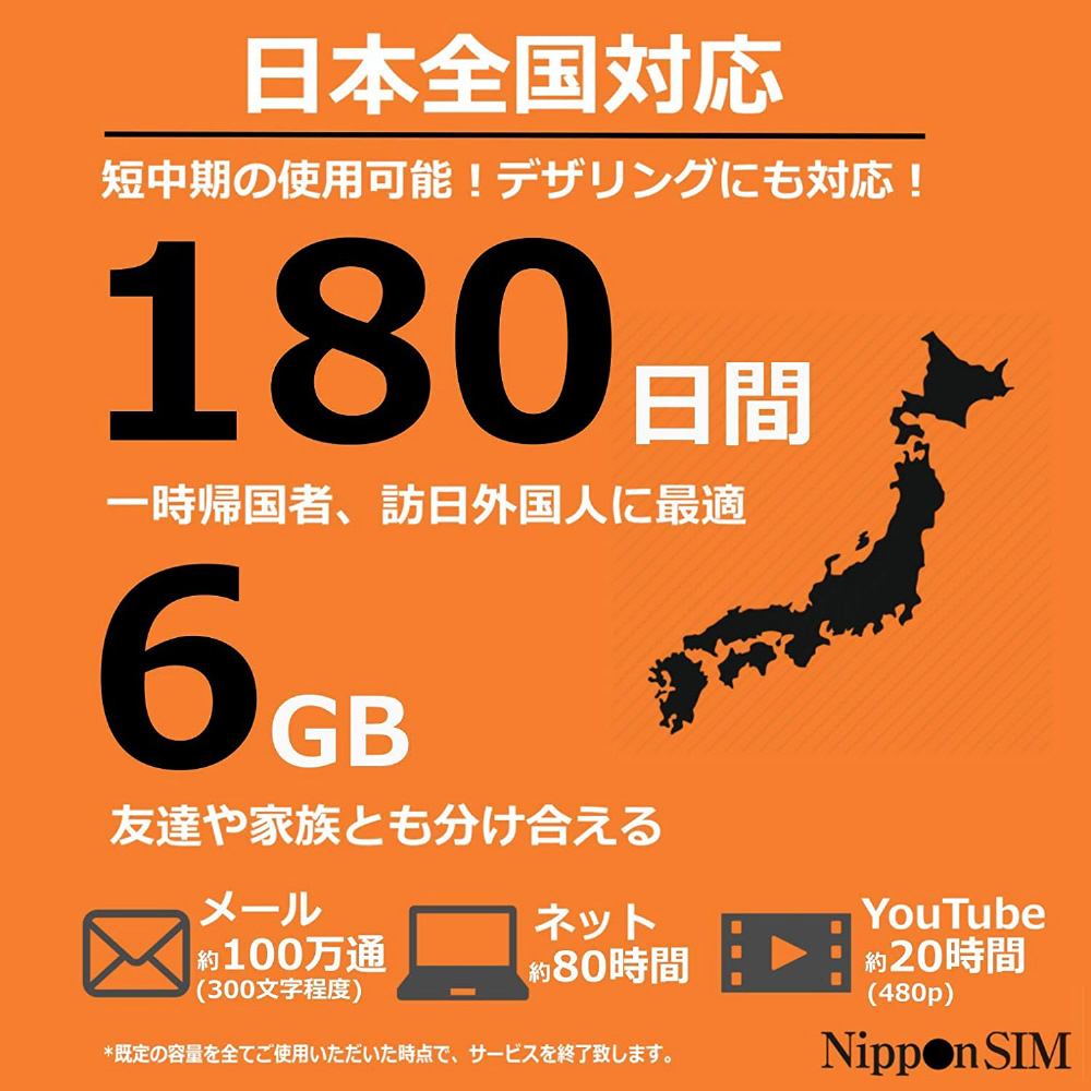 Nippon SIM for Japan 標準版 180日6GB 日本国内用プリペイドデータSIMカード DHASIM099 [マルチSIM /SMS非対応]