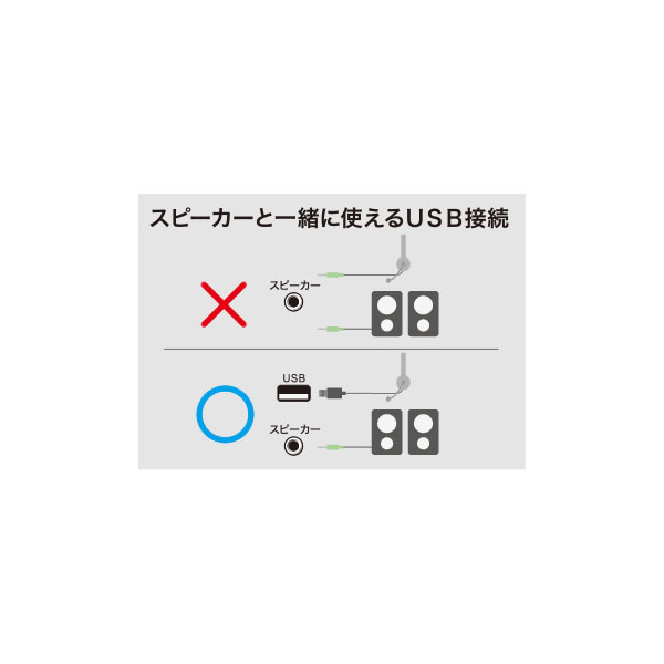 USB接続ヘッドセットなら、スピーカーを接続したままヘッドセットを接続できるため、音楽を聴きながらチャットなどをすることができます。