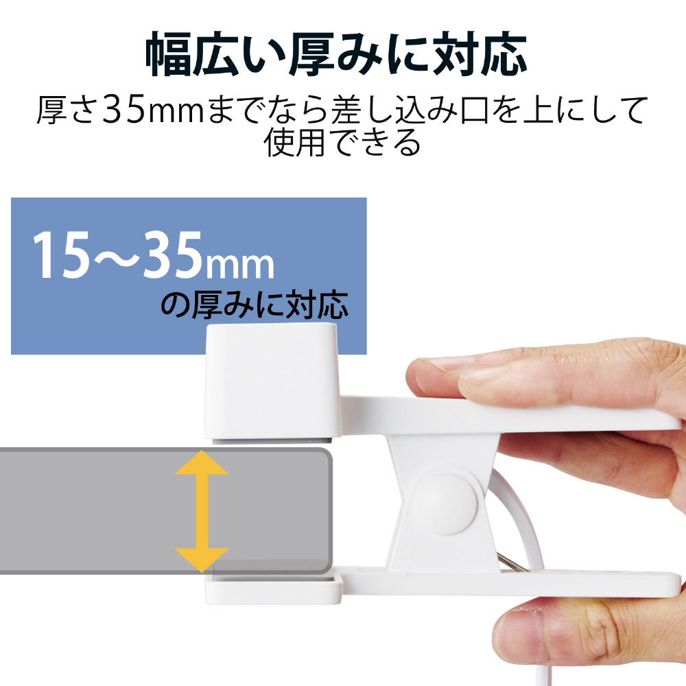 ■15mm〜35mmの厚さの板に設置が可能です。設置する際は差込口が上向きになるようにしてください。