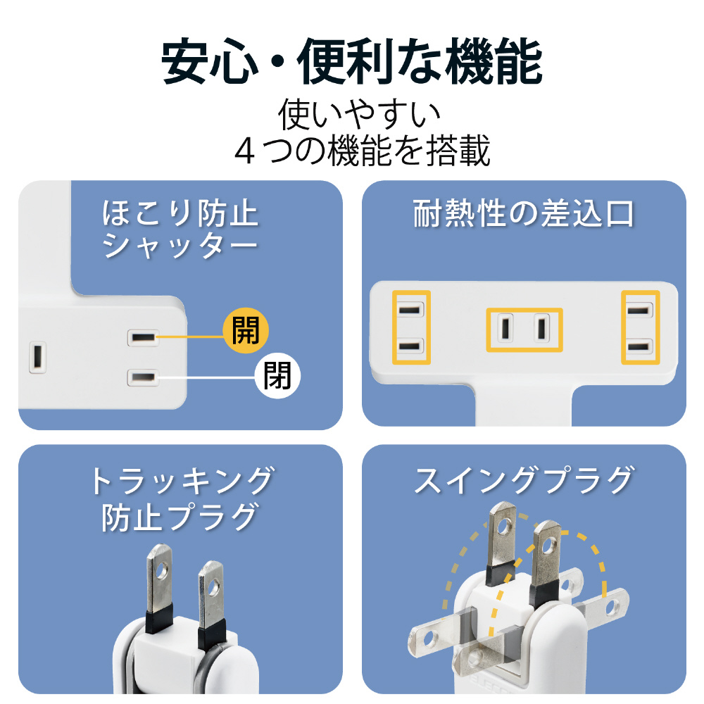 ■差込口にプラグが差し込まれていない場合に埃の侵入を防止する「ほこり防止シャッター」を装備しています。