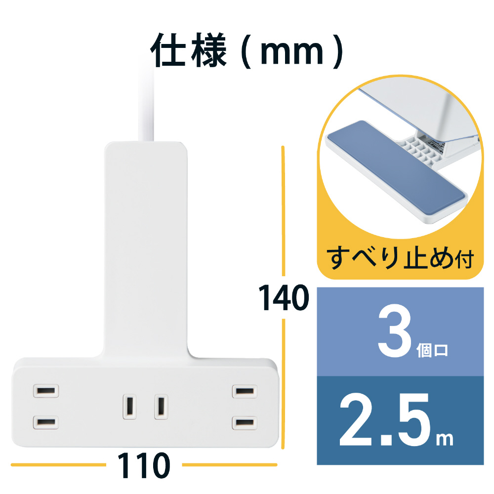 | 商品名 | クリップタップ/雷サージ付/3個口/2.5m ホワイト T-KF03-2325WH |