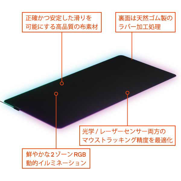 デスク上のあらゆるゲーミング周辺機器を完全にカバーできる大型サイズRGBゲーミングマウスパッド