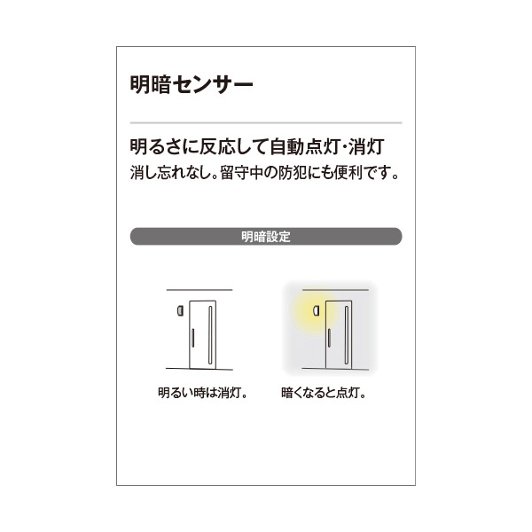 明るさに反応して自動点灯・消灯 消し忘れなし、留守中の防犯にも便利
