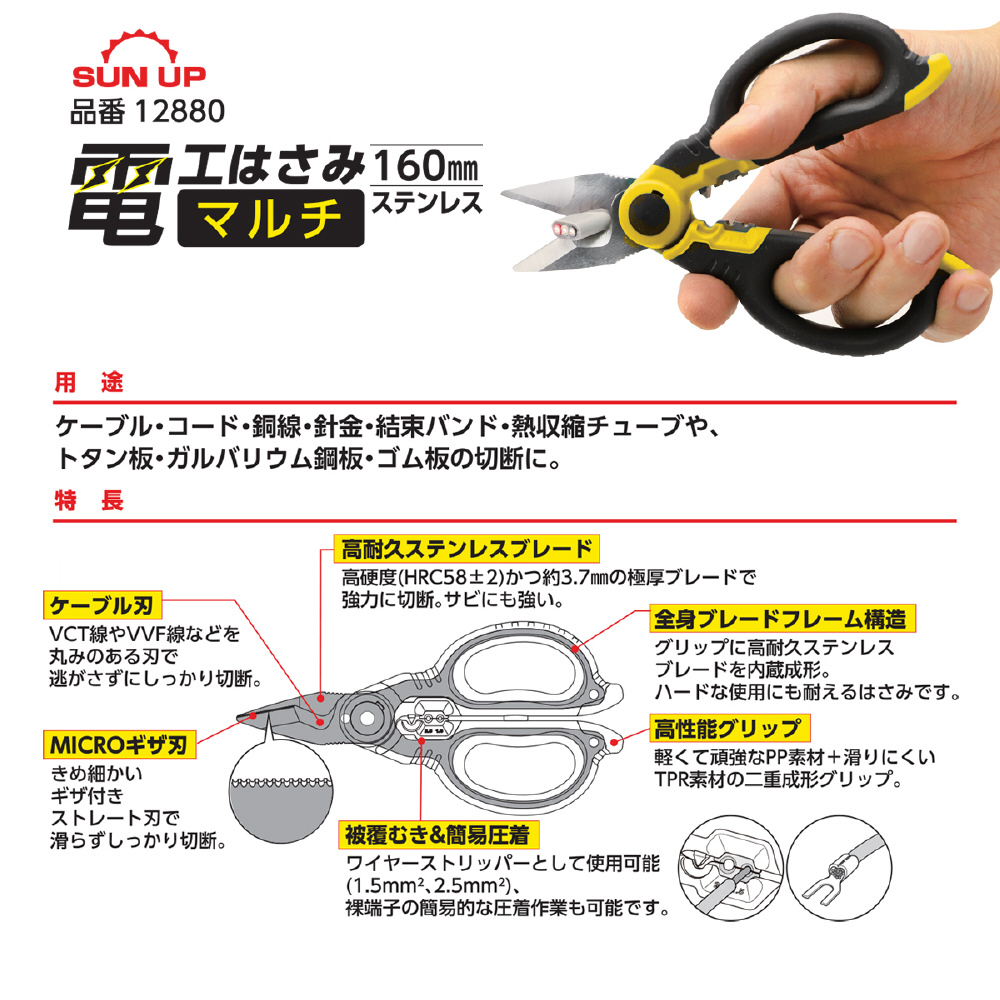 SUN UP 電工はさみ マルチ ステンレス SUN UP