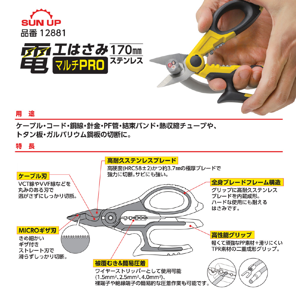 SUN UP 電工はさみ マルチPRO ステンレス SUN UP