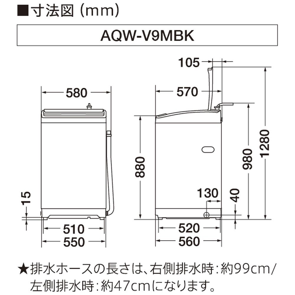 全自動洗濯機 フロストシルバー AQW-V9MBK-FS [洗濯9.0kg /簡易乾燥(送風機能) /上開き]