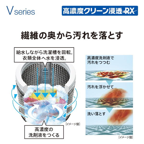 ■衣類を芯からキレイに洗い上げる「高濃度クリーン浸透RX&3Dパワフル洗浄」