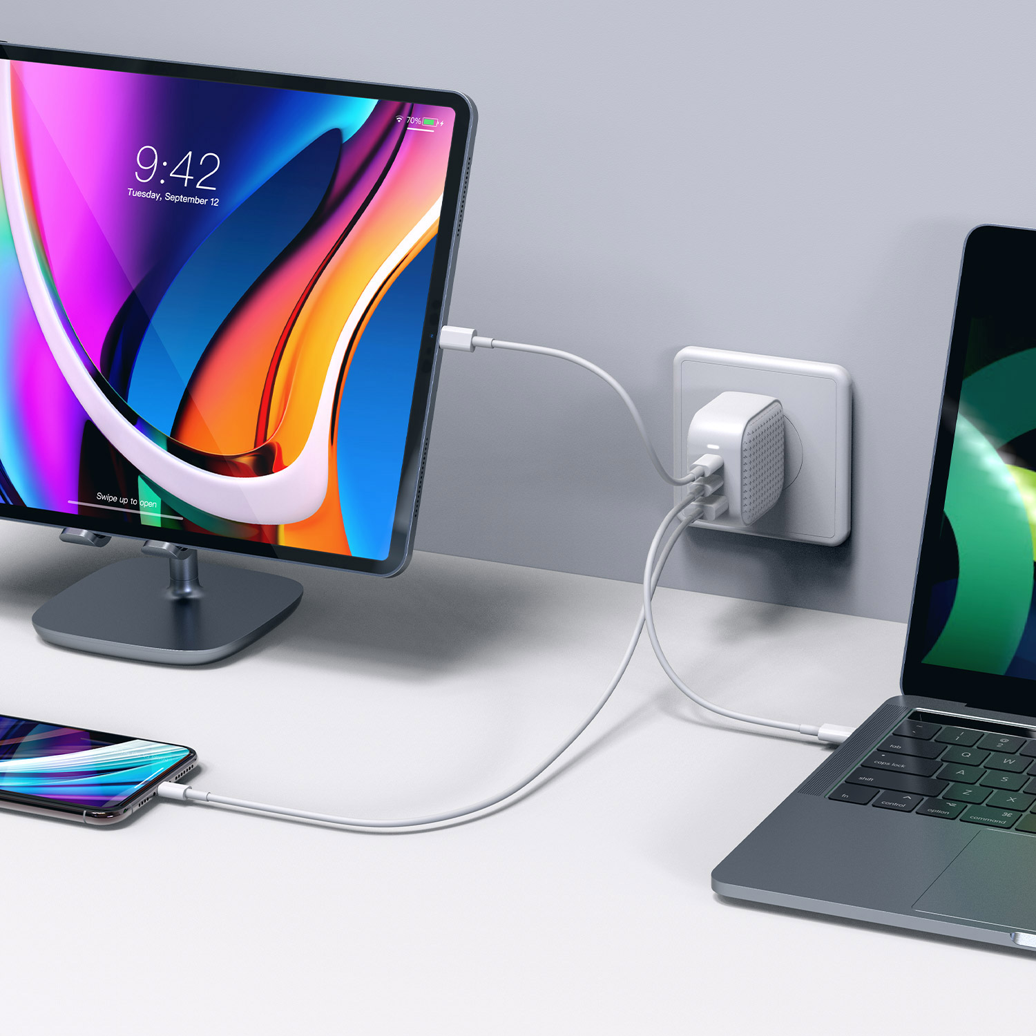 AC-USB充電器 ノートパソコン・タブレットPC対応 65W/36W [3ポート:USB-Cx2+USB-A /USB Power Delivery対応 /Quick Charge対応] ホワイト HP-HJ265WH