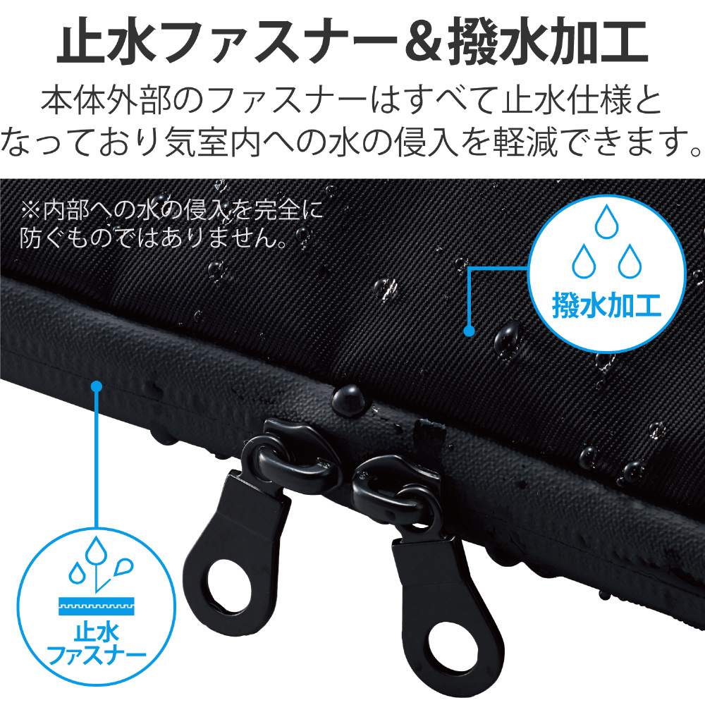 ■ファスナー生地部分からの水濡れを防ぐ、止水ファスナーを採用しています。※内部への水の浸入を完全に防ぐものでありません。