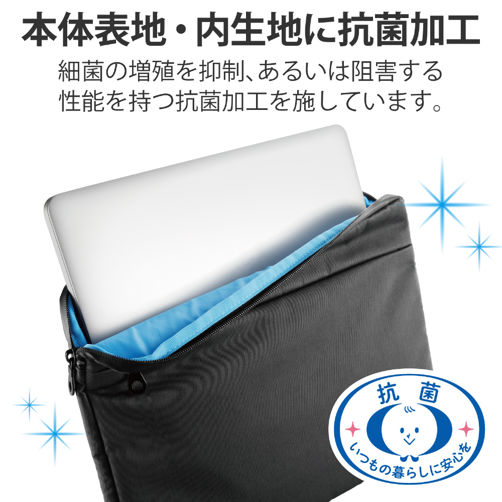 毎日使うものだから、抗菌加工で安心をプラス!パソコンと小物をまとめて持ち運べる、スリム設計のインナーケース。