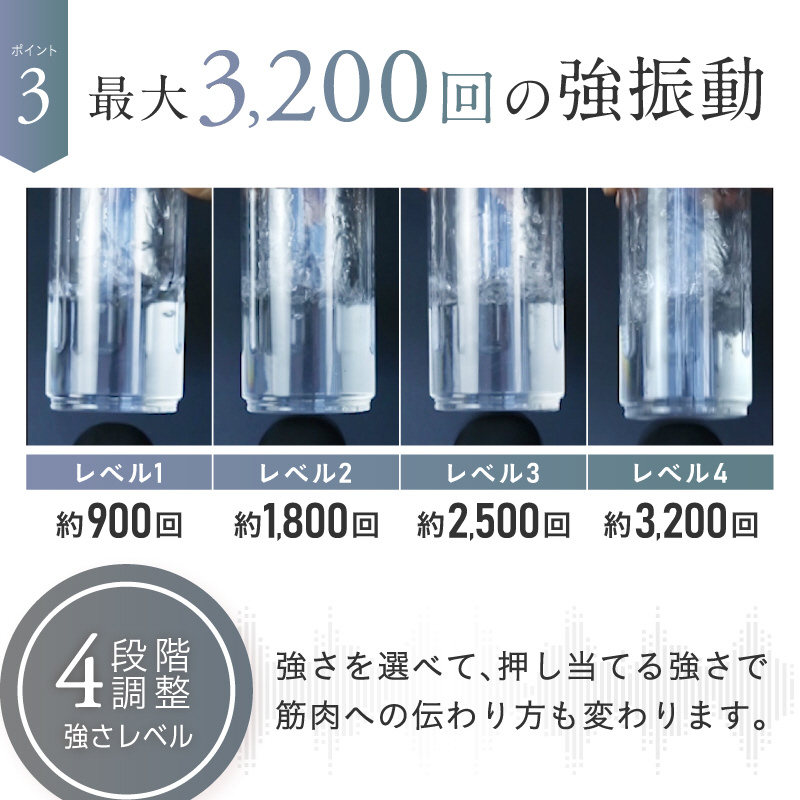 1分間に最大3200回振動 5kg相当の圧力まで耐えられる超ハイパワー設計。