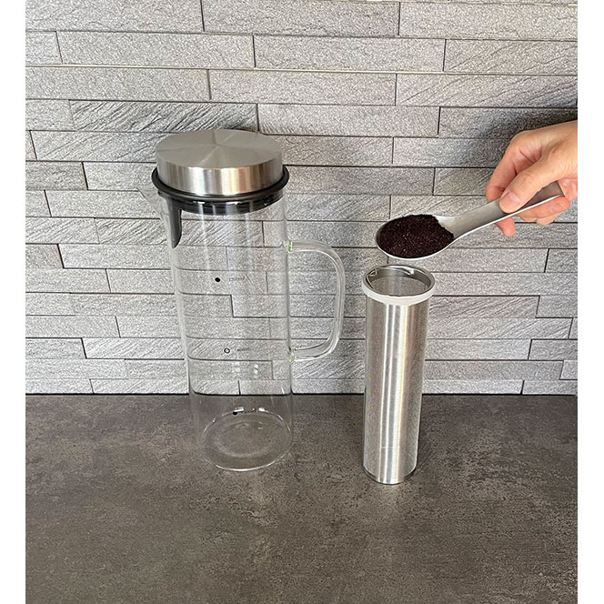 水とコーヒー粉だけで水出しコーヒーが作れる、低温抽出コーヒーボトルです。