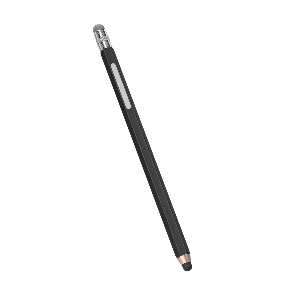 握りやすいエンピツ型タッチペン シリコン+導電性繊維の2WAYペン先 ロングタイプ ブラック OWL-TPSE08-BK
