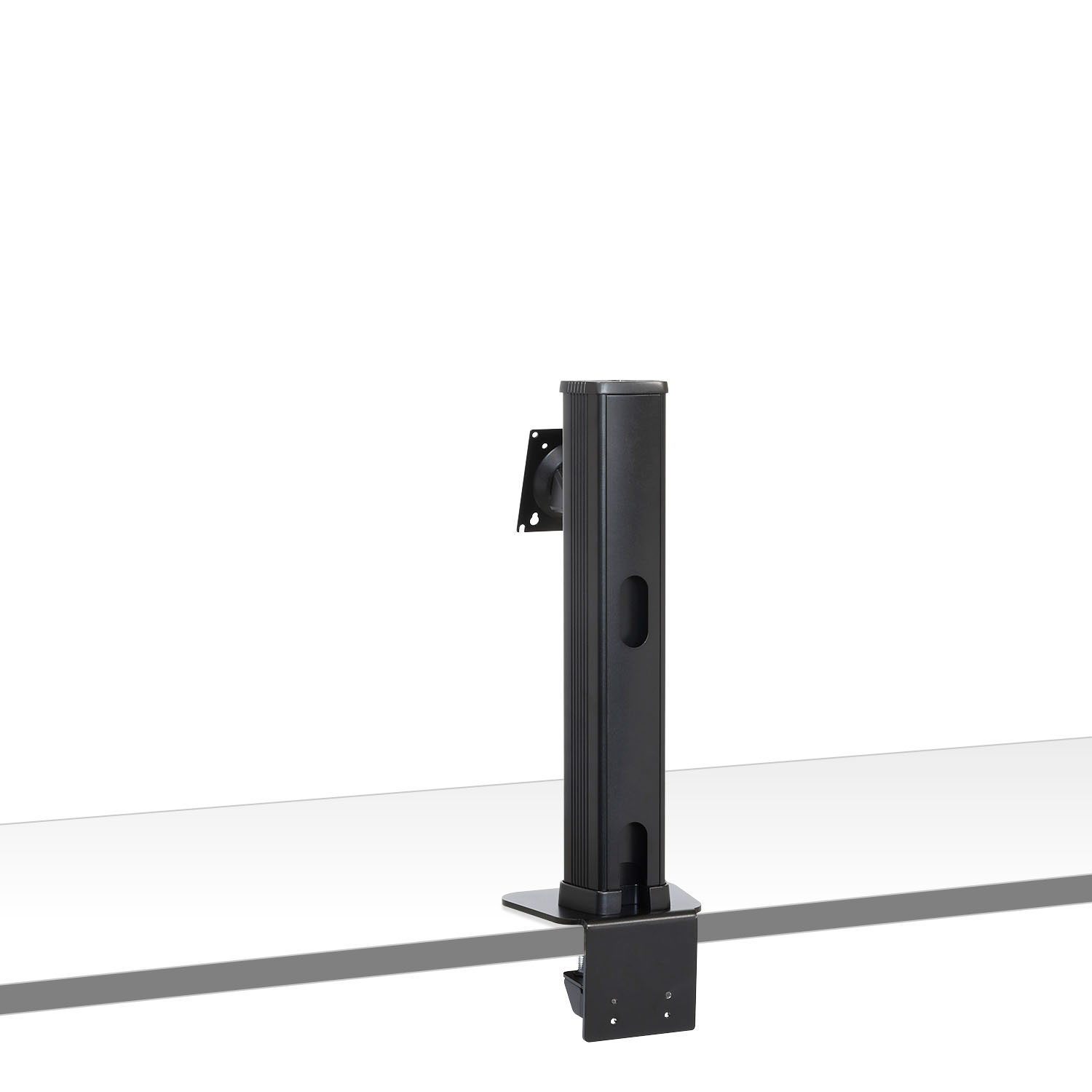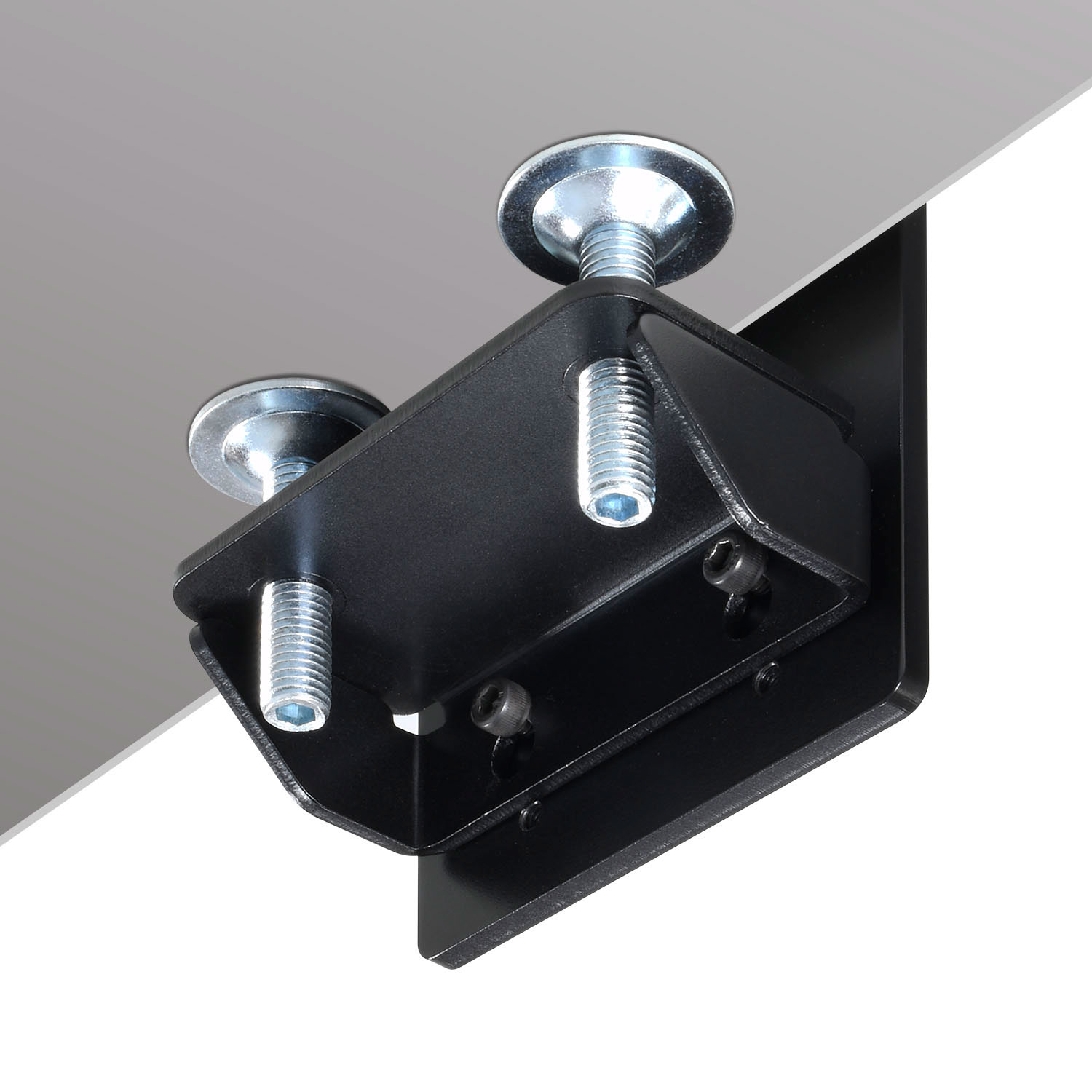 ■デスクの天板への取り付けは、安定感のあるダブルクランプ(天板にはさむ)タイプでガッチリ固定。