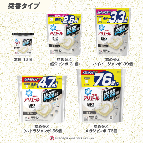 アリエール 洗濯洗剤 ジェルボール4D 炭酸機能でハジける洗浄力 微香 詰め替え 39個