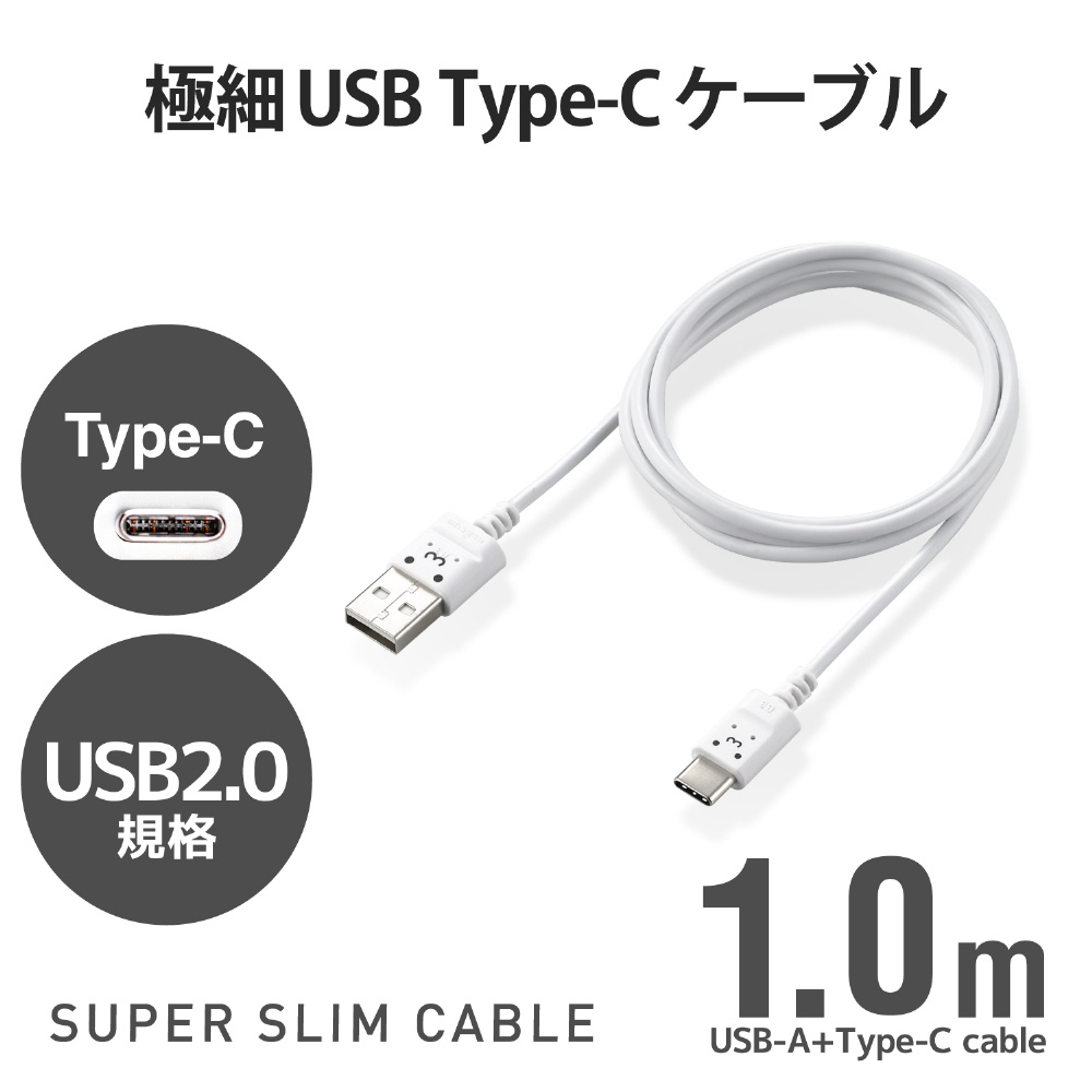 USB Type-Cケーブル/スマホ用/USB(A-C)/極細 ホワイト MPA-ACX10WH
