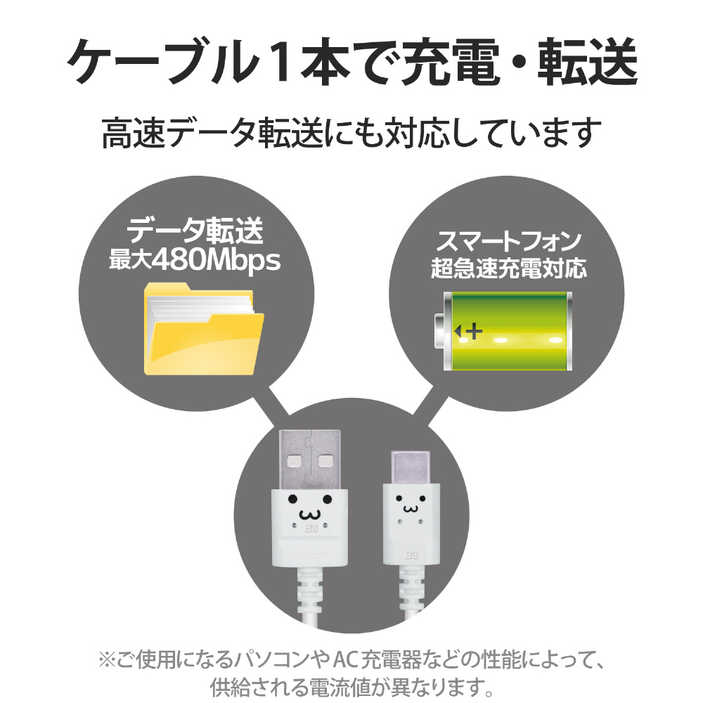 USB Type-Cケーブル/スマホ用/USB(A-C)/極細 ホワイトフェイス MPA-ACX10WF