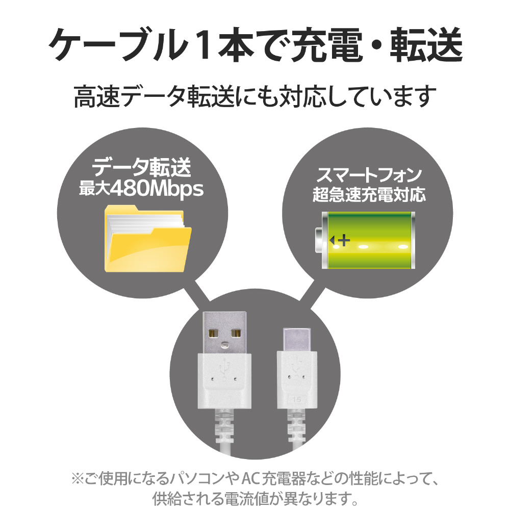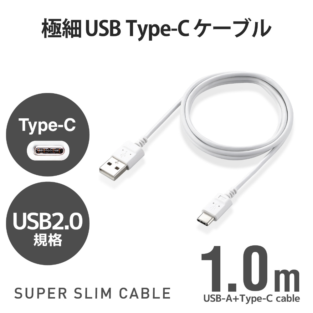 | 商品名 | USB Type-Cケーブル/スマホ用/USB(A-C)/極細 ホワイト MPA-ACX10WH |