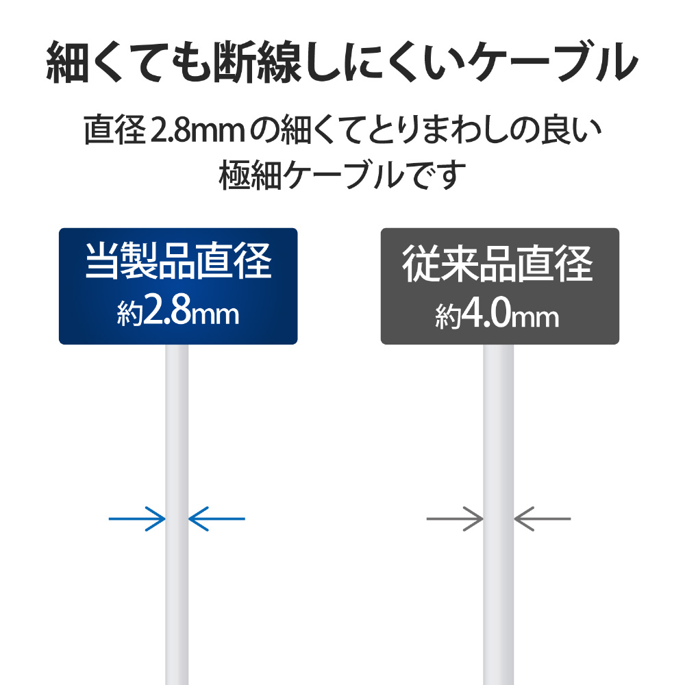 ■直径2.8mmの細くてとりまわしの良い極細ケーブルを使用しています。