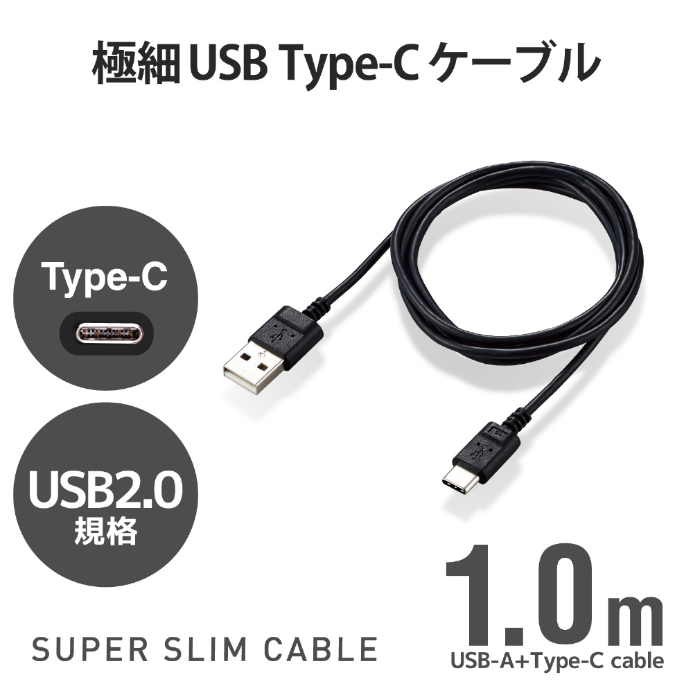 USB Type-Cケーブル/スマホ用/USB(A-C)/極細 ブラック MPA-ACX10BK