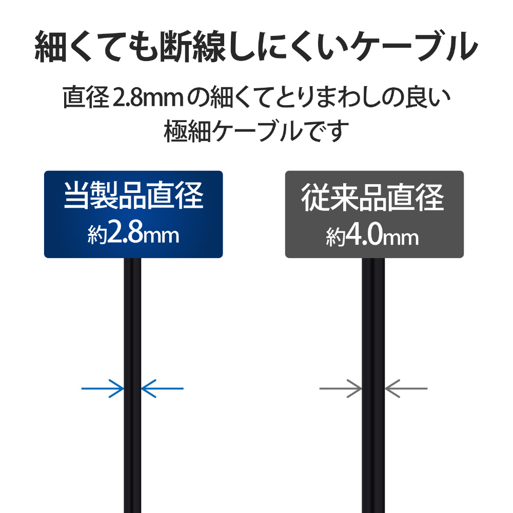 ■直径2.8mmの細くてとりまわしの良い極細ケーブルを使用しています。