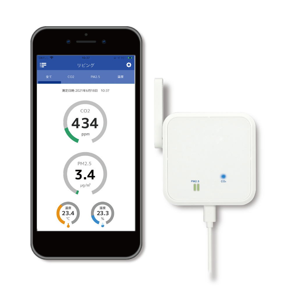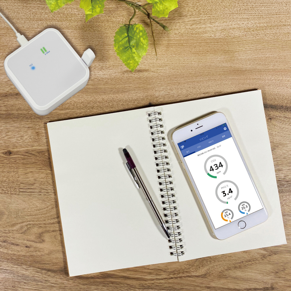 | 仕様2 | 搭載センサー:CO2、PM、温度、湿度 |