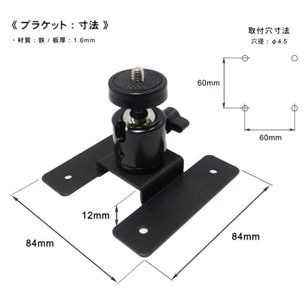 壁や家具等に取付ができる1/4インチネジ付自由雲台です。