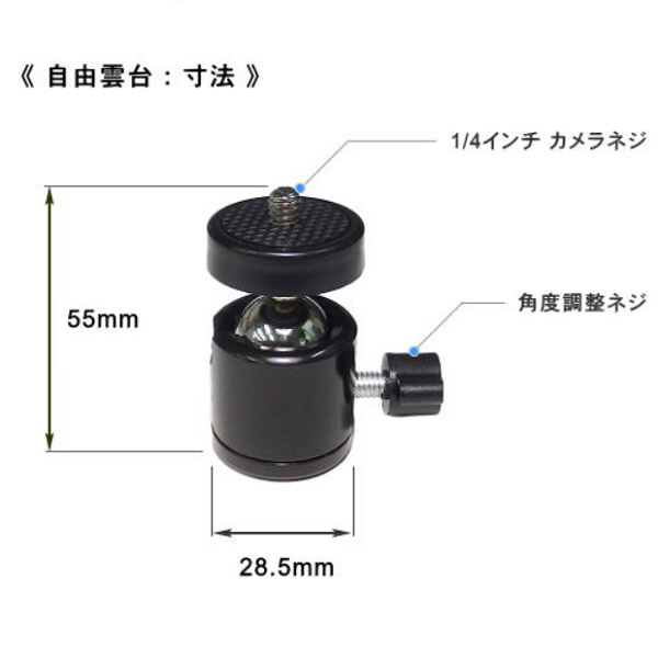 VR機器やデジカメ・小型カメラ・センサー等に最適。自由雲台付で取付角度を自在に調整ができます。