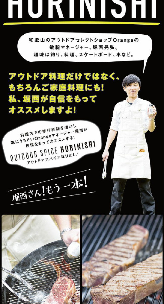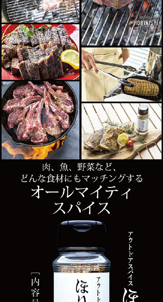 | 商品名 | 香辛料・スパイス アウトドアスパイス 「ほりにし」 HORINISHI (100g 瓶詰) スパイス「ほりにし」 100g瓶詰 |