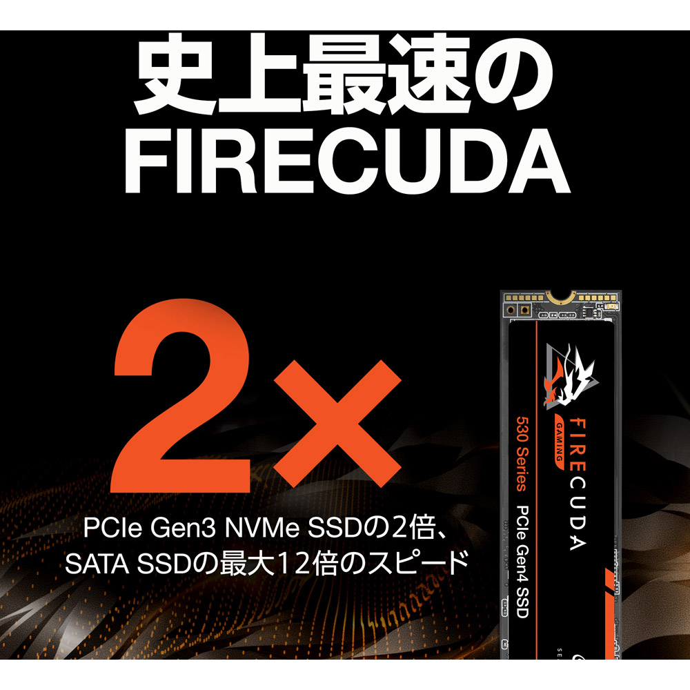 高速性能と卓越した耐久性を備えたSeagate FireCuda 530は、PCIe Gen4のパワーを活かした最高7,300MB/秒の転送速度で、スピードの常識を変えます。