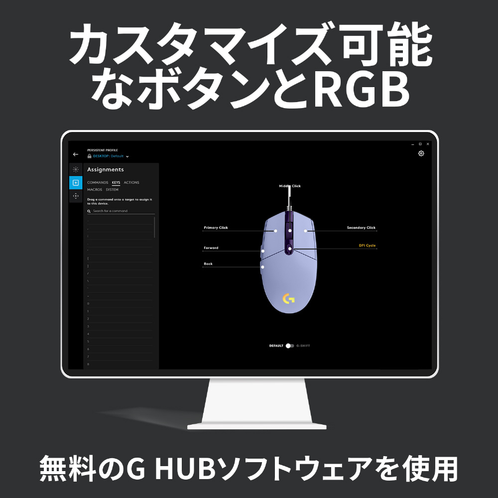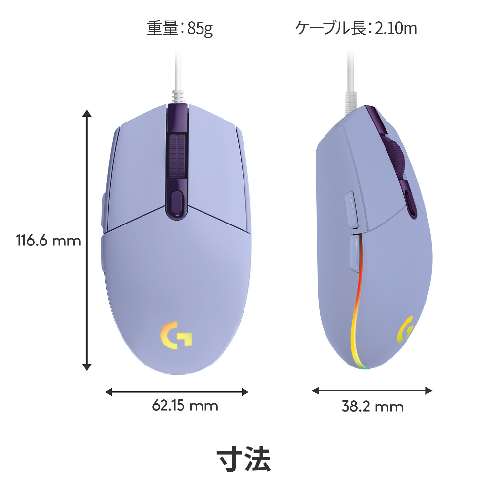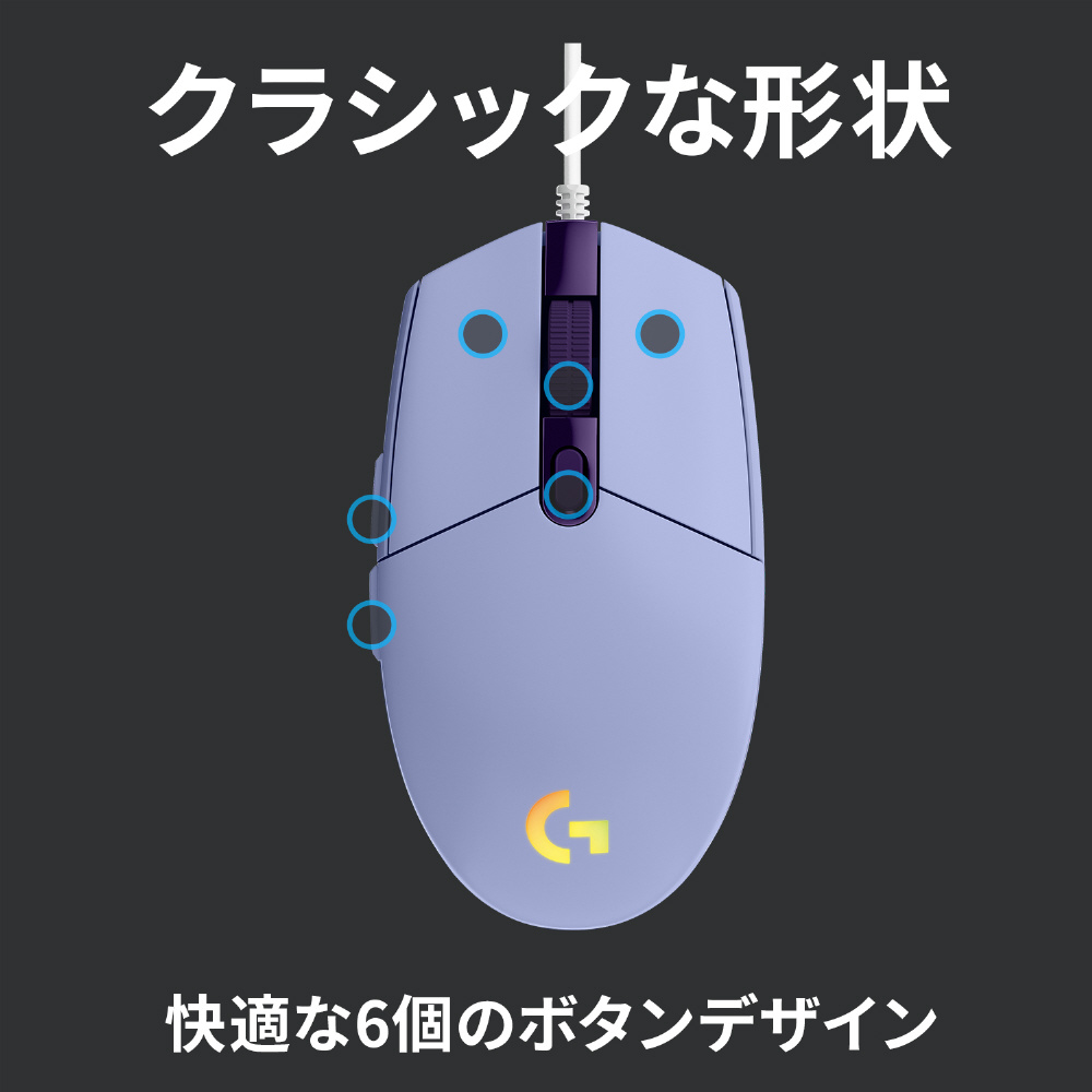 ゲーミング マウス G203 LIGHTSYNC ライラック G203-LC [光学式 /有線 /6ボタン /USB]