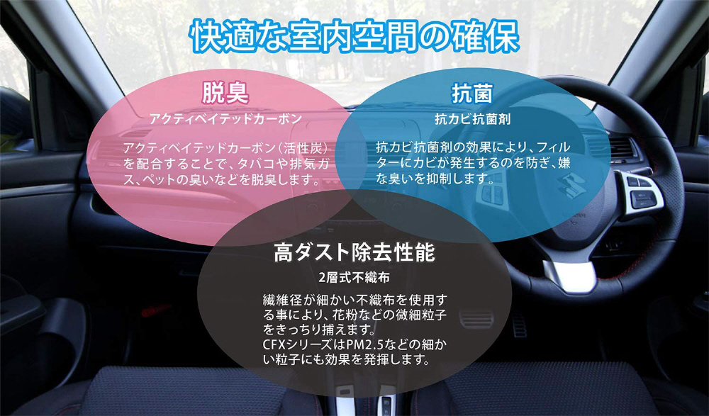 また、高性能フィルターに交換することで、車両への負担を軽減すると共に社内を快適な空間に保つことが出来ます。