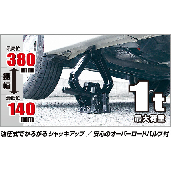 安全を追求したオリジナル設計「車載のパンタグラフジャッキでは作業が大変...」という方にオススメの油圧式ジャッキです