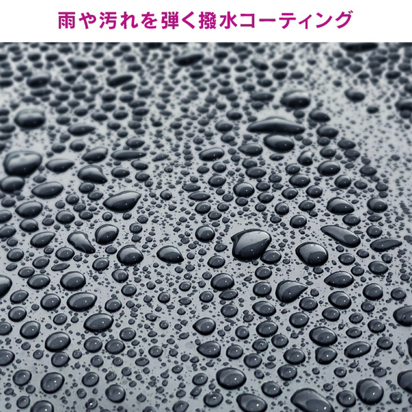 撥水特殊変性シリコーン被膜で、雨や汚れを弾きます。