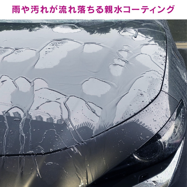 親水特殊変性シリコーン被膜で、雨や汚れが流れ落ちます。