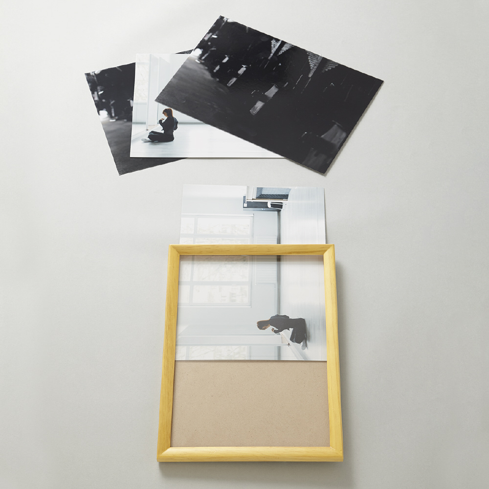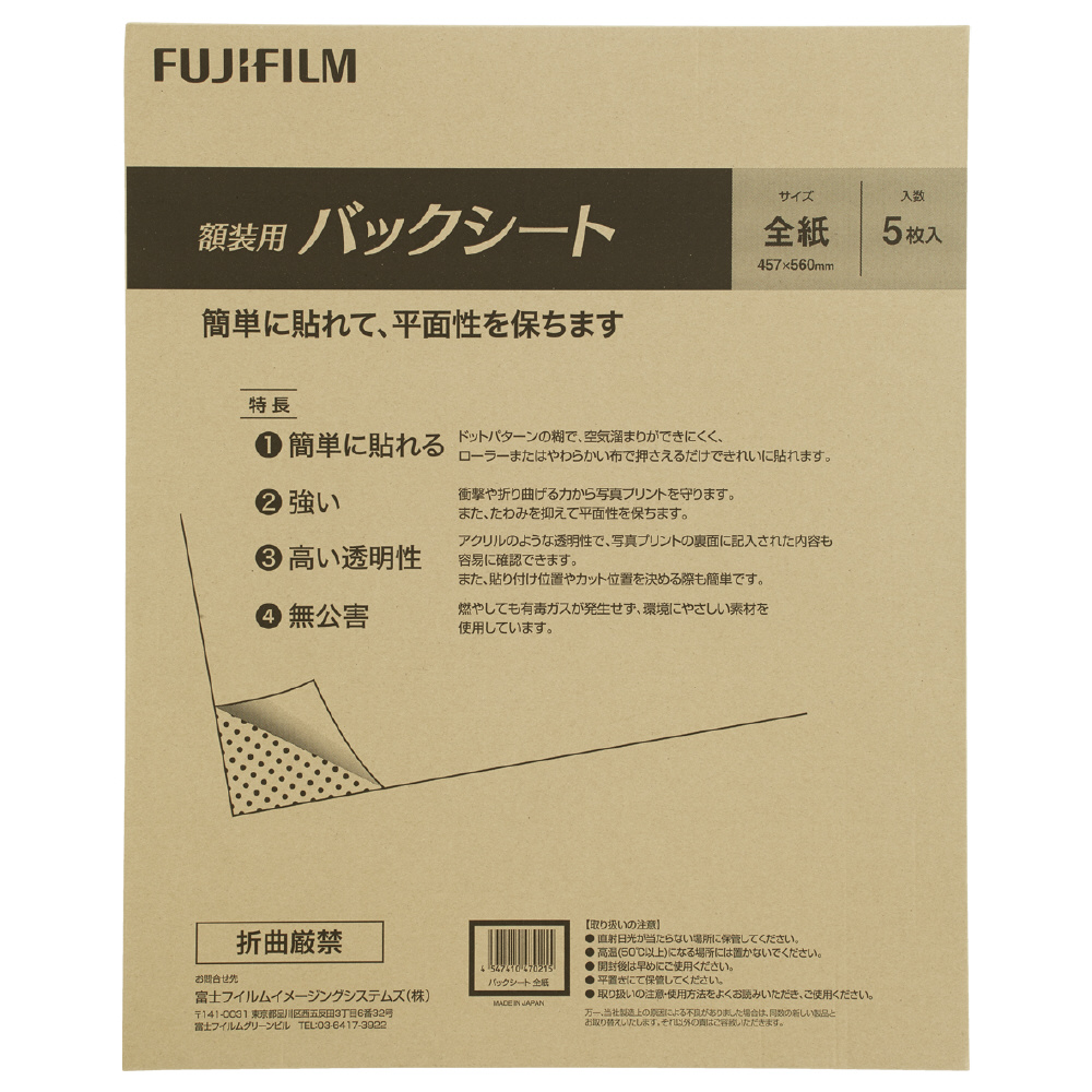 バックシートは額装などする際、写真プリントの折れや波打ちを防ぎ、たわみを抑えて平面性を保つために使用します。