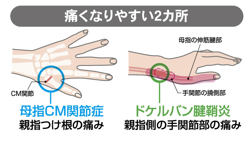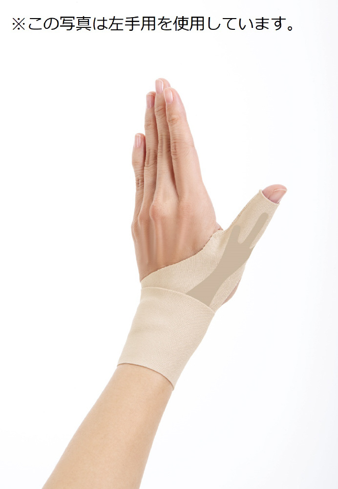 母指のつけ根と手首の2ヵ所を固定することで動きを抑制します。