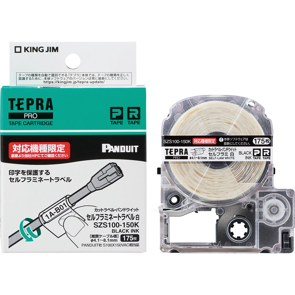 インダストリー・ネットワーク配線機器メーカーのPanduit Corporationと共同開発されたケーブル表示に特化したカットラベルです。「カットラベル・パンドウイット」は対応機種(SR-R980)限定で使用できるテープです。