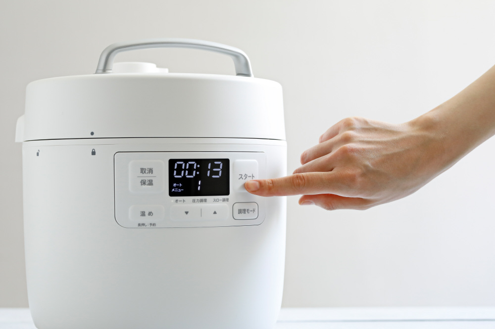 電気圧力鍋はマイコン制御だから、食材を入れたらスイッチを押すだけ。
