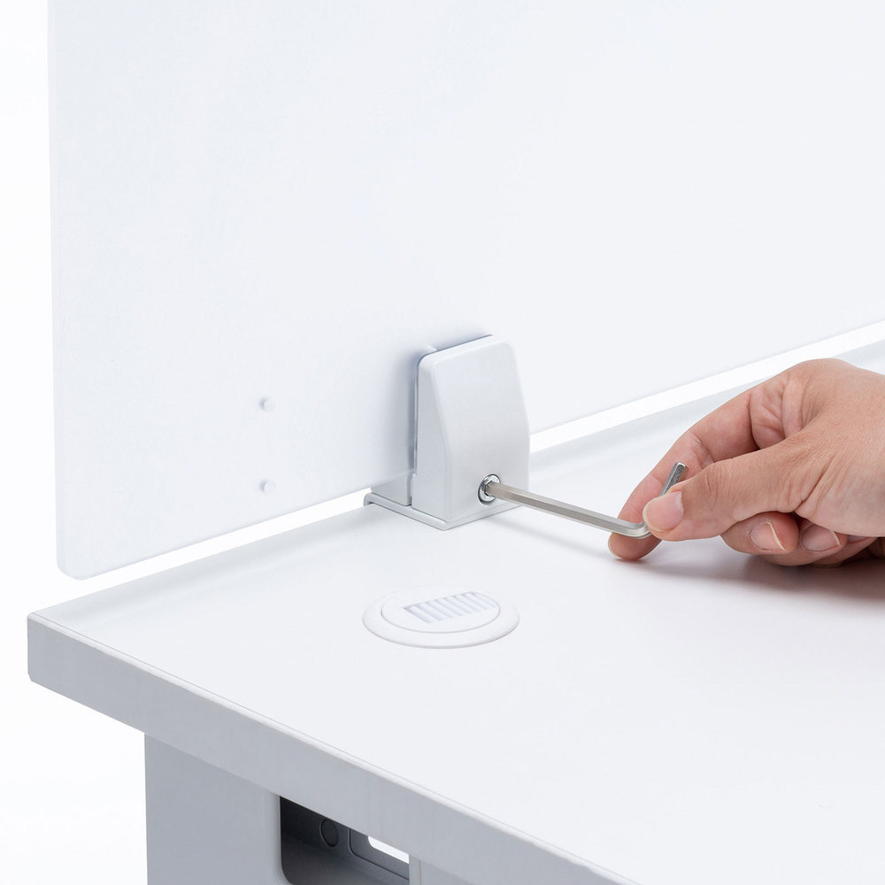 ■パーツの組み換えによって、デスクに固定してパーティションを立てる設置方法と、すでにある衝立などの上にカサ増しとして付ける設置方法の2WAYの使い方ができます。