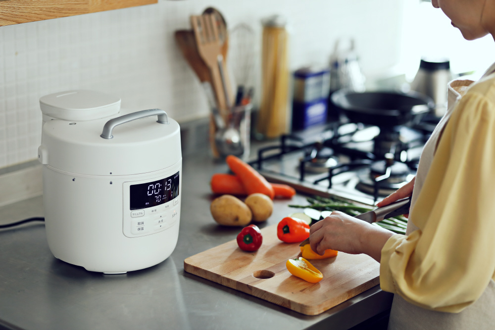 お出かけ前に夕食となるレシピの材料を入れて出来上がり時間を設定すれば、その時間に食べれる用意出来上がる。夏場でもシロカの予約プログラムでは、腐敗することなくおいしく作ることができます。