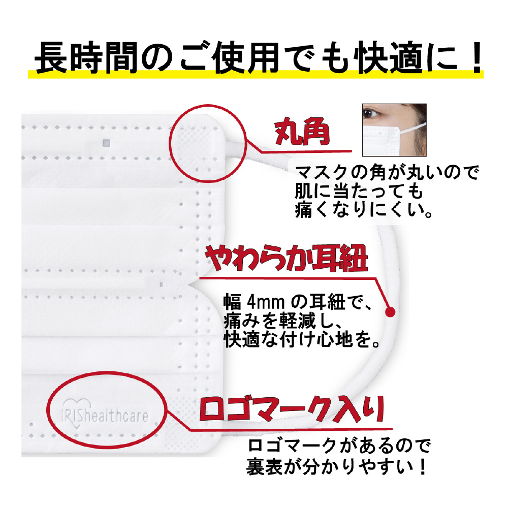 ■丸く柔らかい耳ひも採用で、長時間つけていても耳が痛くなりにくく、一日中快適に過ごせます。