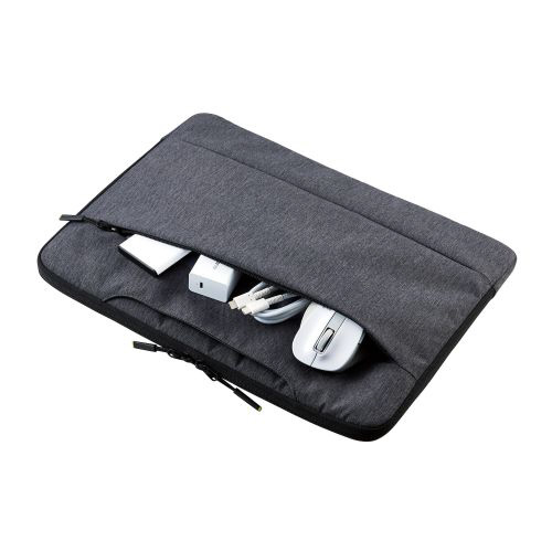 ■ACアダプタ・マウス・ペンなどの周辺機器をまとめて収納できるフロントポケットがついています。ポケット内部には、収納物の整理に便利なスリーブポケットを備えています。