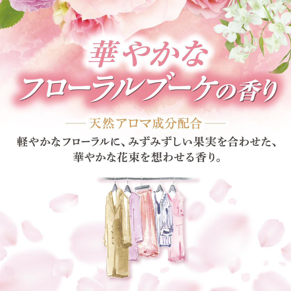 洗いたてのようなやさしい香りのする防虫剤。広い空間をしっかり守ります。防虫・消臭・黄ばみ防止機能付き。収納空間のダニよけ効果も。ウォークインクローゼット2畳分(7,800Lまで)。1年間有効。フローラルブーケの香り。