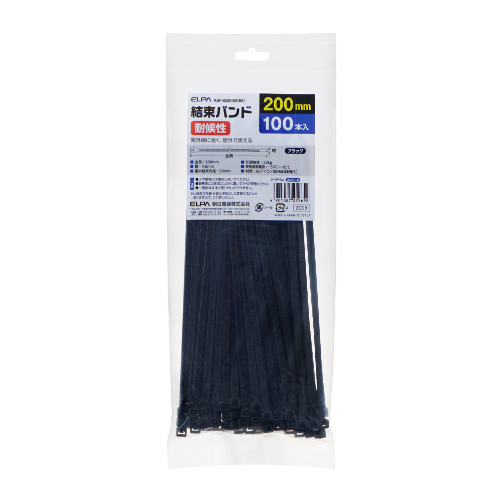 | 商品名 | 結束バンド 耐候性 200mm 100本入 耐候性タイプ KBF-S200100(BK) |