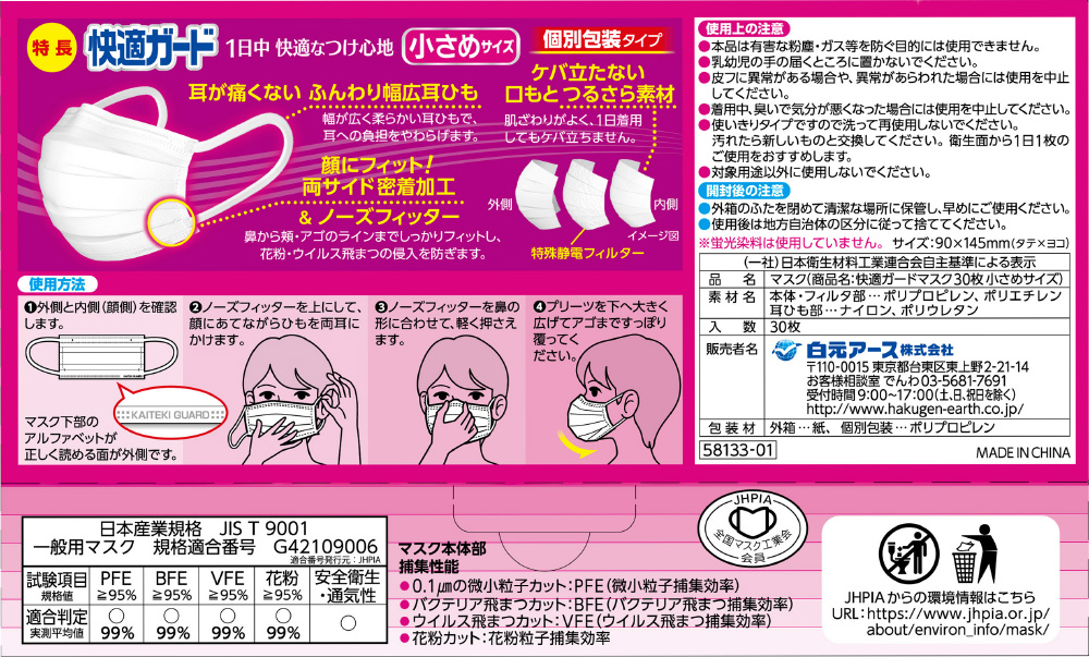 | 商品名 | 快適ガードマスク 小さめサイズ30枚入 |