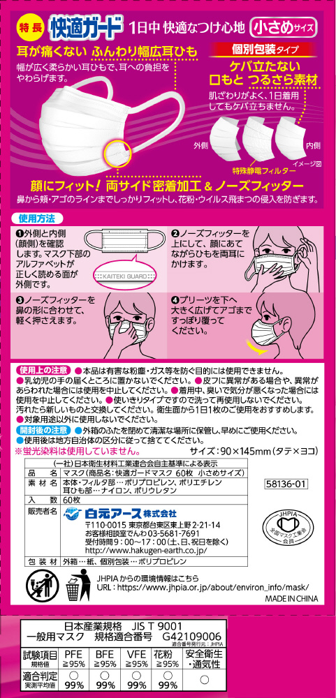 | 商品名 | 快適ガードマスク 小さめサイズ60枚入 |