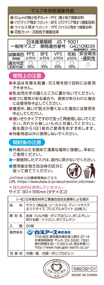| 商品名 | ビースタイル プリーツタイプ ふつうサイズ プレミアムホワイト20枚入 |