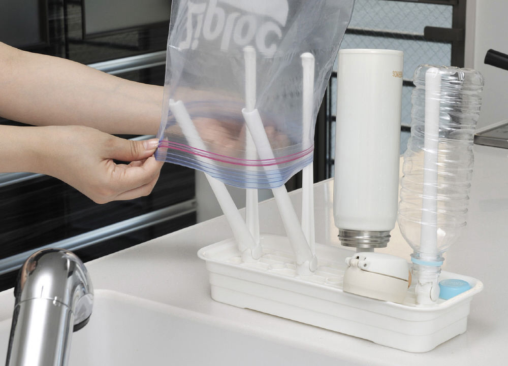 ●開くポールで乾きにくかった食品保存袋の中もしっかり乾燥。