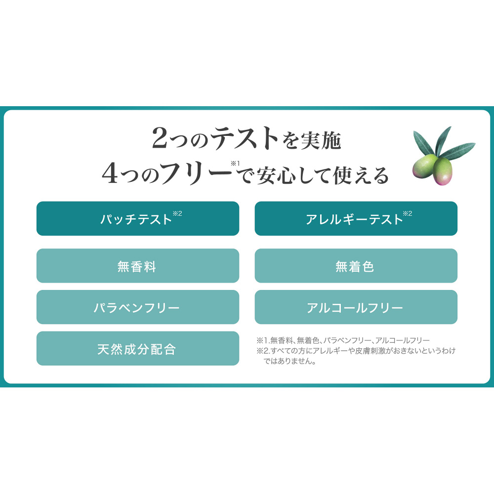 | 仕様1 | 無香料・無着色・パラベンフリー・アルコールフリー・天然成分配合 |